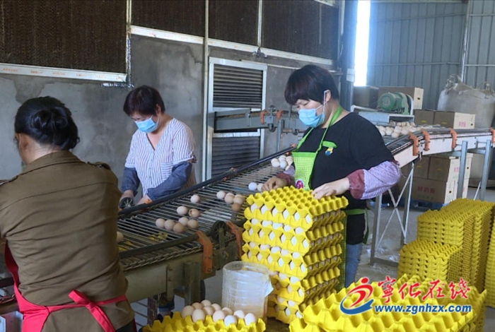 8月31日,在位于方田鄉村頭村的蛋雞集約化生態養殖基地,記者看到雞舍里蛋雞產下的雞蛋順著傳送帶輸送至挑揀車間,數名工人將雞蛋分揀裝箱。