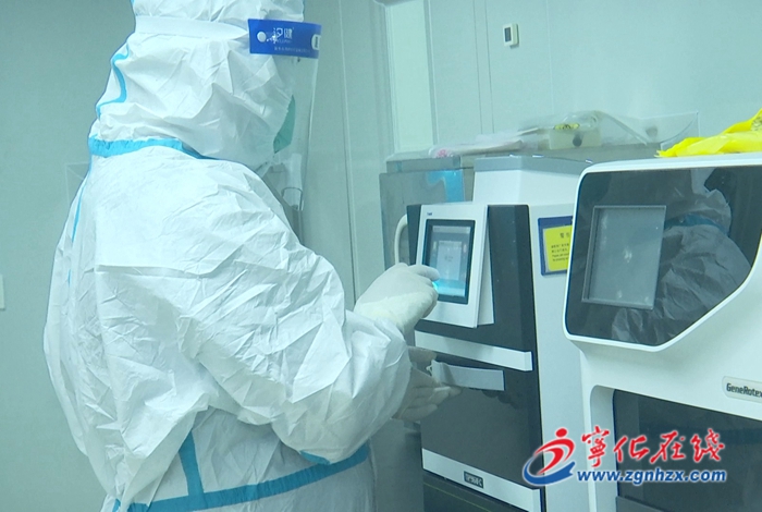在核酸檢測采樣室,身著防護服的工作人員逐一對前來檢測的人員進行咽拭子標本采集。工作人員認真專注,每個動作迅速且準確到位。采集好的核酸樣本,被送到了縣疾控中心核酸檢測實驗室進行檢測。