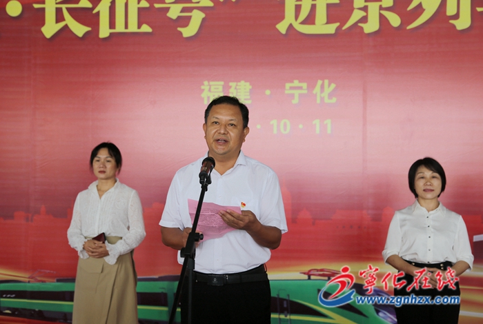 杜寶山在致辭中表示,寧化是中央紅軍長征的四個主要出發地之一,1934年10月,1.4萬中央紅軍從寧化出發,開始了二萬五千里長征,數千寧化子弟兵在長征途中浴血奮戰、壯烈犧牲,為中國革命成功作出了重大貢獻。87年后的今天,以“寧化——長征號”冠名動車,既是紀念中央紅軍長征出發87周年、緬懷革命先烈,更是開啟寧化革命老區振興發展新篇章的重要標志。