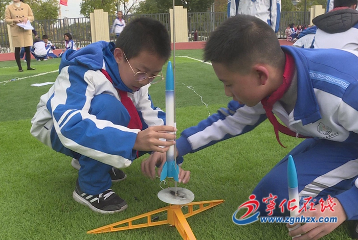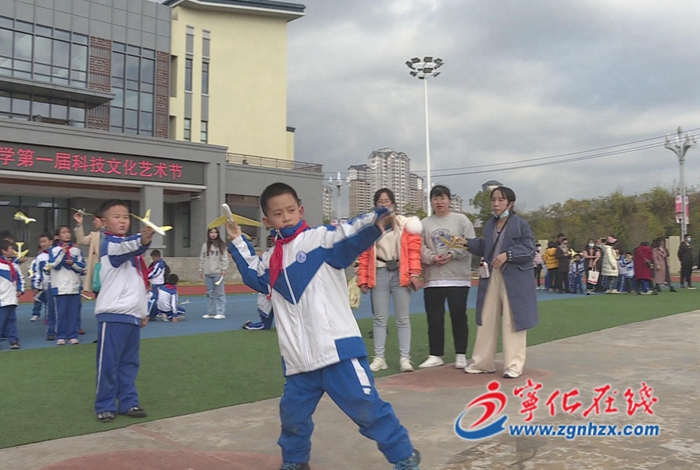 本屆科技文化藝術節的項目內容分低年級組手拋飛機直線距離飛翔、中年級組電容飛機競時賽和高年級組東風火箭傘降競時賽。參賽同學們動手放飛飛機、給火箭填裝發射火藥,參賽同學們年紀雖小,但神情專注,手法嫻熟?;鸺拿看紊?、飛機的每一次起飛,都引來同學們陣陣喝彩。