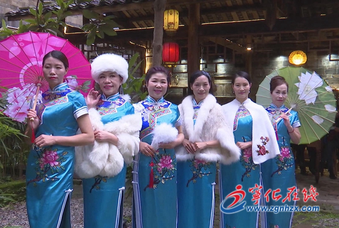 旗袍愛好者在古巷里進行著旗袍秀展示,旗袍、油紙傘,加上古樸的建筑,讓人充分領略中華民族傳統文化的魅力,也吸引不少市民和游客前來觀賞。