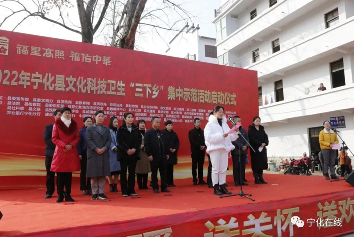1月13日,2022年寧化縣文化科技衛(wèi)生“三下鄉(xiāng)”集中示范活動啟動儀式在淮土鎮(zhèn)舉行。此次活動由縣委宣傳部、縣委文明辦、縣發(fā)改局等15家單位主辦,縣法院、縣委組織部、縣融媒體中心等33家單位聯(lián)辦。副縣長周美華參加啟動儀式。