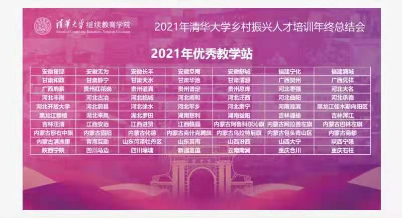 近日,在清華大學鄉村振興人才培訓年終總結會上,縣委黨校榮獲2021年清華大學鄉村振興優秀教學站,是福建省獲該獎項的2個教學站之一。