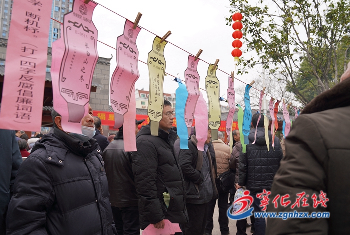 活動(dòng)現(xiàn)場(chǎng),一排排彩色謎面隨風(fēng)飄揚(yáng),廣場(chǎng)上充滿濃濃的喜慶氛圍。工作人員精心編制的四五百條燈謎吸引了眾多市民爭(zhēng)相競(jìng)猜,燈謎內(nèi)容種類繁多,涵蓋了廉政、福字、數(shù)學(xué)、文學(xué)、地理等方面,既有趣味性,又兼具知識(shí)性。
