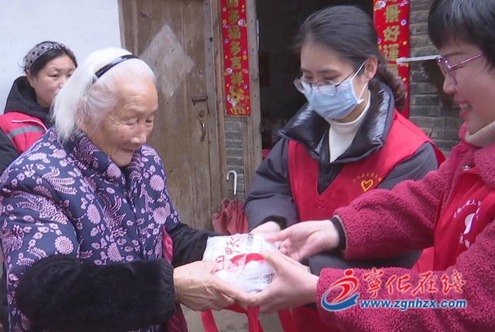 社區志愿者們將熱騰騰的元宵送給孤寡老人,和老人家一起歡度元宵。