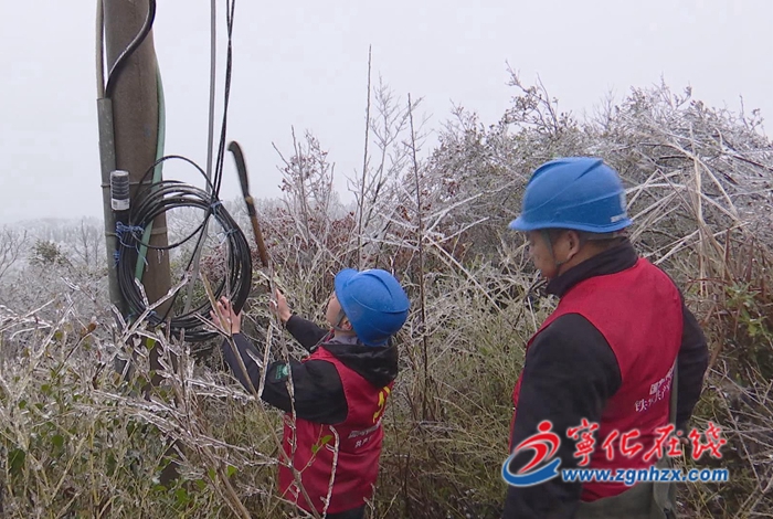 在海拔1300多米的福建嶂,這里的線路出現(xiàn)霜凍結(jié)冰。寧化中沙供電所黨員服務(wù)隊(duì)進(jìn)行線路除冰作業(yè),防止冰凍導(dǎo)致線路斷裂,并仔細(xì)檢查線路是否存在漏電風(fēng)險(xiǎn)。