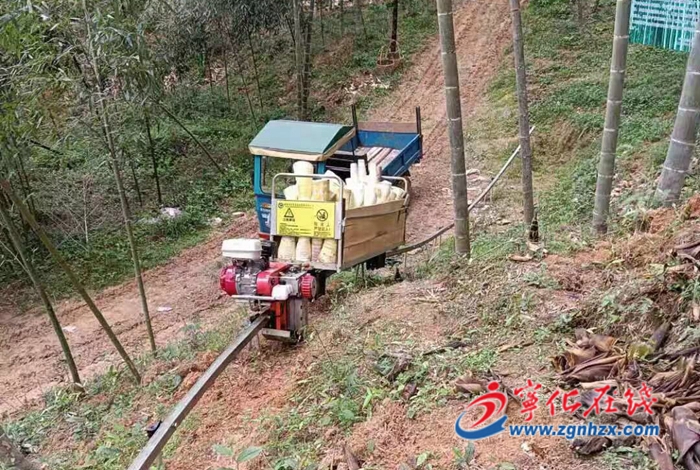 竹山交通不便,如何將竹筍搬下山,成為困擾竹農(nóng)多年的老大難。近年來,安樂鎮(zhèn)黨委圍繞“黨建+項目”模式,投入80萬元,新建5.2公里長的竹山軌道,通過簡易“小火車”將竹筍運下山。“每年采挖的春筍量大,不易貯存,運輸不及時就白白爛掉了。”吳育林感慨道,“小火車”結(jié)構(gòu)簡單、安裝方便,不破壞原有地貌,適用于山地運輸。