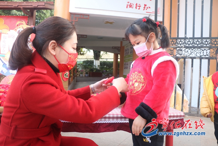 該園在大門口設置了狀元跨欄,祝愿孩子們平安、健康成長,學習進步。孩子們進園后,老師及家委代表給孩子們送上了旺旺雪餅和福氣手環禮物,并祝孩子們在新學期快樂成長。