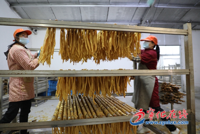 腐竹,別名豆腐皮,是餐桌上常見菜品,深得客家人的喜愛。春節(jié)過后,寧化30多家豆制品加工廠陸續(xù)開工,帶動當(dāng)?shù)亓羰貗D女、困難戶等200多人家門口就業(yè)增收。