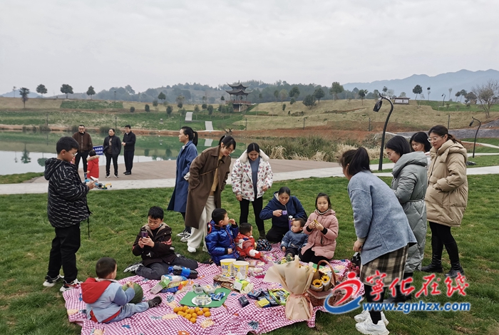 不少游客帶著孩子前來踏青,他們在坪地上露營、玩游戲、做手工,欣賞美麗的蛟湖,其樂融融。