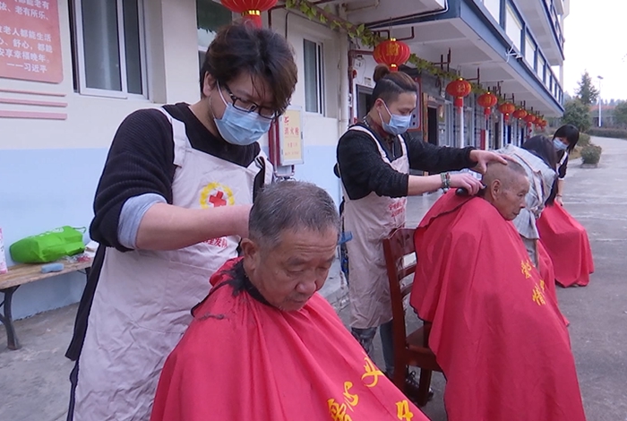 “大爺,您看看這個發型好不好?”“好!這下精神多了”……義剪志愿者們認真傾聽老人們的理發訴求,嫻熟的手藝和周到的服務贏得了老人們的連連稱贊。另一邊,鎮衛生院的醫務人員也在為村民進行血壓、血糖等檢查,并開展衛生健康知識宣傳。期間,志愿者們還向周邊群眾發放了《曹坊鎮反食品浪費倡議書》共100余份,倡導“婚事新辦、喪事簡辦、余事不辦”。