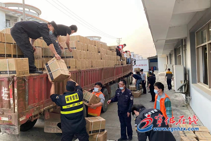 卸貨現(xiàn)場(chǎng),志愿者們將一箱箱物資分裝、清點(diǎn)、再裝車,有序送出。