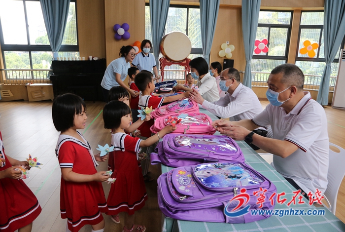 在名遠幼兒園,到處洋溢著節日氣息,孩子們正在參加各項游園活動。吳茂生接過孩子們遞上的自制手工捧花、糖果手環,為他們的心靈手巧點贊并分發節日禮品,向辛勤付出的老師們表示問候。他說,做好少年兒童的教育工作是我們義不容辭的責任,要突出辦園特色、發揮自身優勢,用心用情呵護少年兒童健康茁壯成長。
