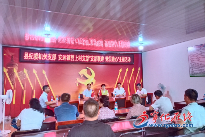 6月30日,縣紀委機關黨支部與安遠鎮營上、永躍、東橋、馬家、巖前、硝坊六個村黨支部開展“支部聯建,黨員連心”主題聯建活動。