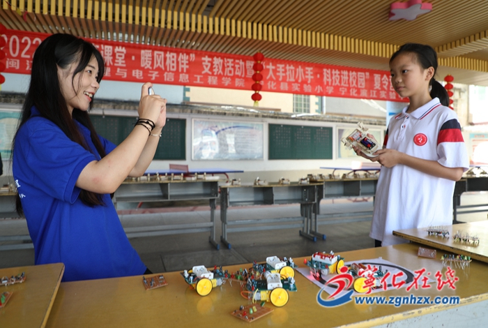 7月22日,閩江學院物電學院“五育課堂·暖風相伴”支教活動暨“大手拉小手·科技進校園”夏令營閉營儀式在寧化實驗小學舉行。來自縣實驗小學、濱江實驗中學的100名參訓營員到場參加。