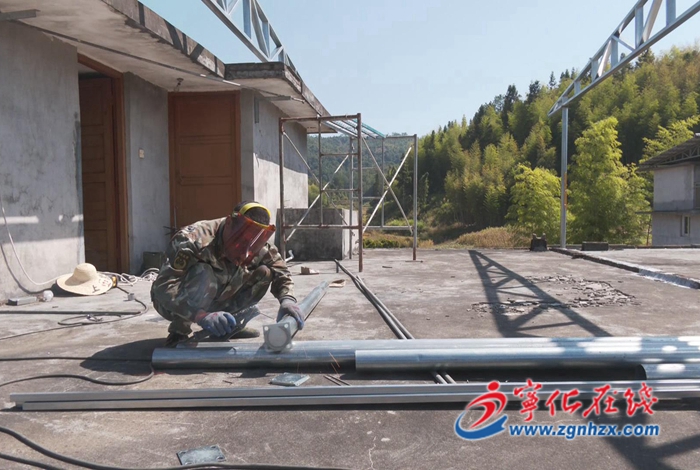 近日,在寧化方田鄉方田村工人們正在屋頂進行鋼材切割、焊接,建造屋頂頂棚,村內房屋外立面粉刷已經基本完成,這是方田鄉全域土地綜合整治試點工作的一個場景。