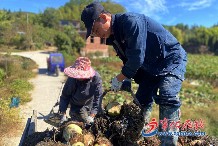 連日來,在寧化縣安遠鎮萬畝檳榔芋種植基地,田間地頭隨處可見農戶忙著挖芋、清淤、裝筐、挑運,相互配合將一個個檳榔芋采收裝車,現場一派繁忙的收獲景象。