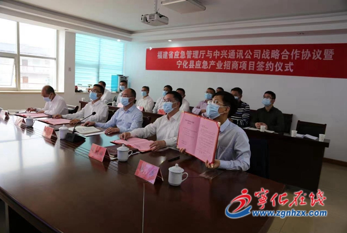 10月29日上午,“福建省應急管理廳與中興通訊公司戰略合作框架協議”暨寧化縣應急產業招商項目簽約儀式舉行,儀式采取“云上簽約”方式進行,在福州設主會場,寧化、深圳、上海設4個分會場。省應急管理廳與中興通訊股份有限公司簽訂戰略合作框架協議,寧化縣與環國(福建)應急安全產業園有限公司、優普泰(深圳)科技有限公司、青島悟空智聯醫療科技有限公司、深圳世和安全技術咨詢有限公司等4家公司簽訂合作協議,建設5個應急產業項目,總投資6.6億元。