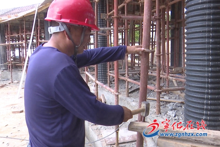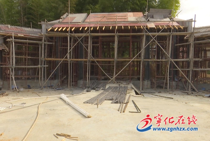 近日,走進寧化縣湖村鎮龍頭村村民活動中心的“福”文化長廊建設現場,挖掘機正在平整土地,工人們加固腳手架,為后續屋檐掛頂做準備。