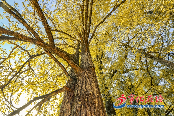 走進(jìn)水茜鎮(zhèn)與安遠(yuǎn)鎮(zhèn),幾十株百年古銀杏呈現(xiàn)出斑斕的金色,大自然仿佛一位油畫大師給銀杏樹調(diào)出了夢幻的色彩。陽光透過樹葉的縫隙照射下來,樹影斑駁,直晃人眼。扇狀的銀杏葉如一串串金色風(fēng)鈴,在風(fēng)中搖曳生姿。