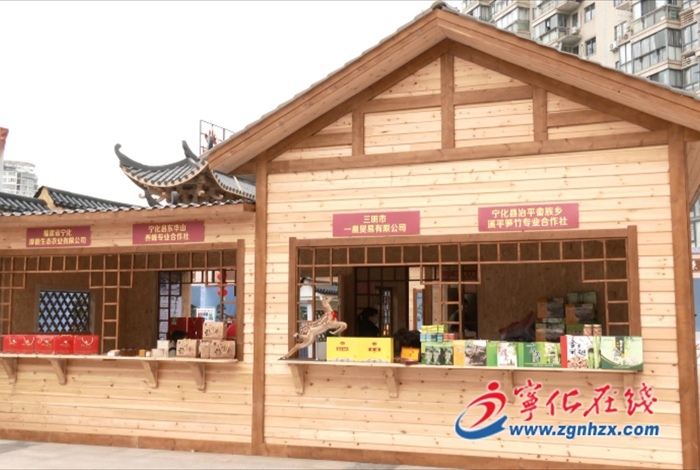 “寧化展銷館是結(jié)合客家鄉(xiāng)村四合院的結(jié)構(gòu),再采用木質(zhì)環(huán)保的材料進(jìn)行設(shè)計(jì)、施工,讓大家更了解寧化特產(chǎn)的同時(shí),還能夠了解到寧化的客家建筑文化。”三明市豪亭園林景觀工程有限公司負(fù)責(zé)人溫志峰介紹。