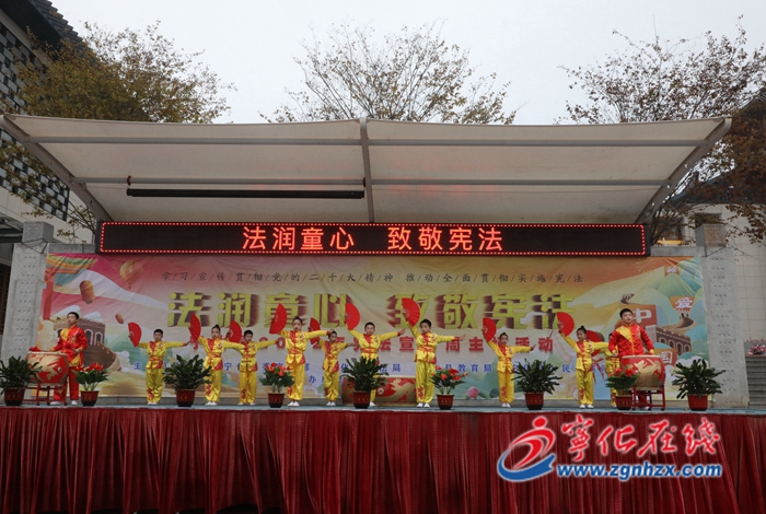 活動中,寧化縣司法局負責人為縣“巾幗蒲公英法律服務團”代表授旗;全校學生共同傳唱《憲法伴我成長》;文藝表演通過傳統技藝、舞蹈等豐富多彩的表現形式,將憲法知識融入表演,為全校師生帶來了一場精彩的法治文化視聽盛宴。