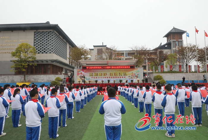 名遠小學校長帶領全校師生近千人在國旗下齊聲誦讀憲法部分條文,鏗鏘字句彰顯著全校師生對良法善治堅定不移的尊崇,對憲法權威矢志不渝的信仰。