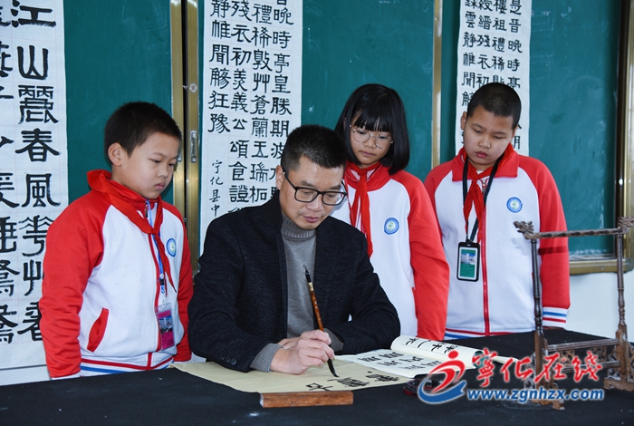 安遠中心學校寄宿生多,值日教師每天需通宵值班。一天深夜,當孫曉春查崗到學生陳小清床前時,聽到他說夢話,用手摸了摸他額頭,發現他發高燒,趕緊將他送往鎮衛生院,后一直守在學生床邊,直到天亮。家長得知此事后,感激地對孫曉春說:“孫老師,孩子交給您,我們一百個放心!”孫曉春愛好書法,擔任學校書法興趣班教學,先后指導30多人次在縣級以上書法大賽中獲獎。在書法啟蒙課上,孫曉春從文房四寶、毛筆的構造、書法字體等知識入手,詳細講解漢字的書寫方法,強調基本功訓練要注重觀察和模仿。“不會觀察就不會模仿,不會模仿就很難有質的長進。”孫曉春認為,練字貴在堅持,能鍛煉學生的毅力與注意力。