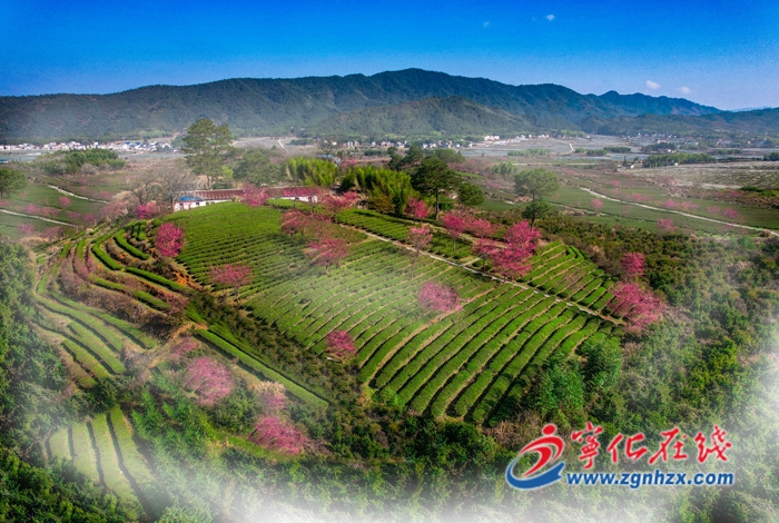 連日來,寧化縣湖村鎮的三千株絢麗的福建山櫻點綴在一千畝茶園之間,粉紅的櫻花紛紛迎風綻放,美麗的花朵與綠意盎然的茶樹相映成景,一幅幅春日畫卷美不勝收,不負春光。
