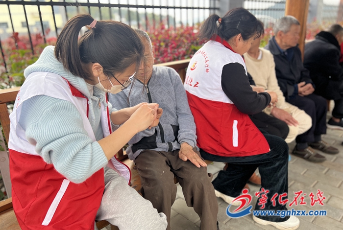醫護志愿者詳細詢問老人們的身體健康情況,為他們做血壓測量、心肺聽診等常規檢查,普及健康科學的生活方式,引導老人們樹立健康觀念、培養健康習慣。