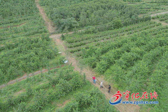 5月17日,在城郊鎮連屋村的果山上,縣農業科學研究所所長高級農藝師徐小明正手把手對果農現場指導,解答他們在果樹栽培和管理中遇到的難題。