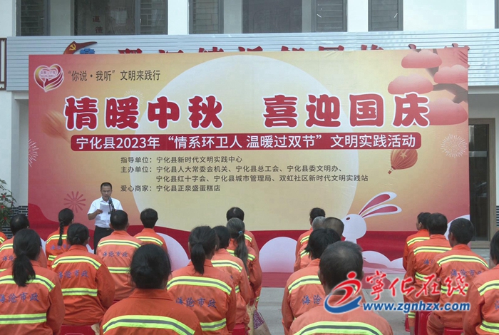 近日,由寧化縣新時代文明實踐中心、縣人大機關、縣委文明辦、縣總工會等單位聯合舉辦的“情系環衛人·溫暖過雙節”文明實踐活動在寧化縣新時代文明實踐中心廣場舉行。