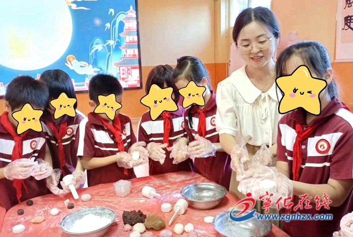 活動現場,學校食堂餐桌上擺放著面粉、模具、餡料等原料和工具。教師志愿者向孩子們介紹了中秋節、國慶節的相關知識,食堂師傅現場指導孩子們自制月餅。孩子們互相合作,精心制作了自己的“獨家月餅”。當看到自己親手成功制作成月餅時,大家的臉上綻放著燦爛的笑容。孩子們吃著自己制作的美味月餅,進一步感受到了節日的氛圍和學校大家庭的溫暖。