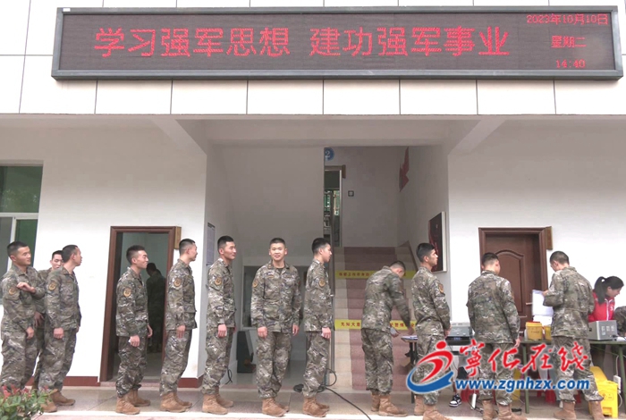 當天,武警官兵們在武警寧化中隊排隊等候,依次進行填表登記、血型查驗、現場抽血等步驟。? ?