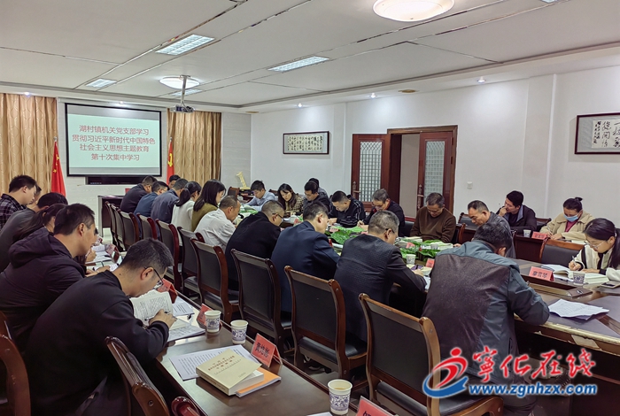 12月14日晚,湖村鎮機關黨支部召開學習貫徹習近平新時代中國特色社會主義思想主題教育第十次集中學習。