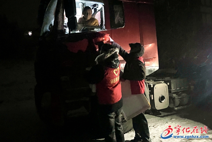 1月22日,受大雪天氣影響,省道221安遠段路面結冰,為確保行車安全對路段實施交通管制。為確保滯留司機在吃飯、飲水等方面保障,安遠鎮里組織鎮村干部和志愿者全力做好滯留貨車司機臨時幫助工作,截至目前已累計向發放快餐、熱水等50份。