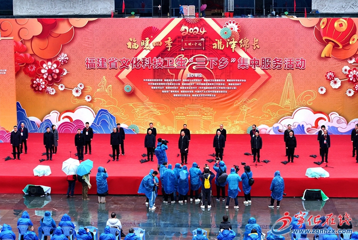 1月30日,2024年福建省文化科技衛生“三下鄉”集中服務活動在三明市寧化縣城郊鎮舉行。省委常委、宣傳部部長張彥出席并宣布活動啟動。市委書記李興湖,市委常委、宣傳部部長陳列平,縣委書記王勝文、縣長吳茂生出席活動。