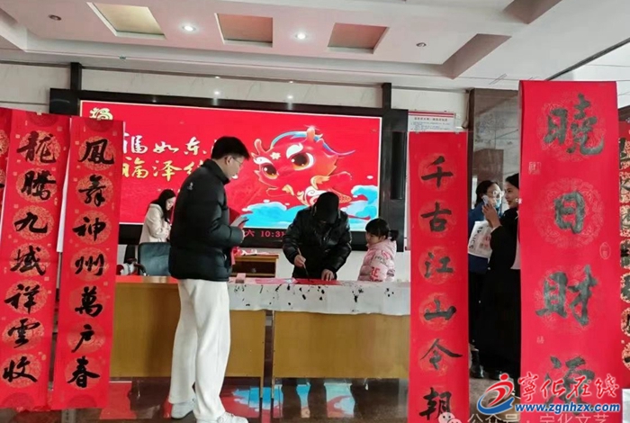 “翠水波歡歌盛世,龍門魚躍慶新年”“甲辰大吉”……活動現場,紅紙鋪陳,墨香四溢,來自寧化縣書法家協會的池賢杰、王永洪、吳志凌、劉肇強四位書法家揮毫潑墨,一張張飽含祝福的“福”字,一副副充滿吉祥寓意的春聯在行云流水間新鮮出爐,為即將來臨的春節增添了濃厚的喜慶氛圍。