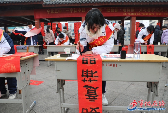 1月28日,寧化縣教育局舉辦“迎新春,送祝福”義寫春聯社會實踐活動,縣校外活動中心及實驗小學、紅旗小學、五中、六中、城東中學等14所城區中小學200多名師生志愿者兵分8路,走進廣場、街頭、社區等地揮毫潑墨,現場義寫春聯8500多副、“福”字3800余個,為廣大群眾送上新春祝福。