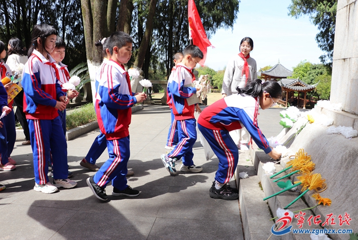 活動中,少先隊員們站立紀念碑前莊嚴宣誓、敬禮明志。并向烈士們敬獻鮮花,致敬英魂。此次活動,讓寧師附小師生在緬懷英烈、銘記歷史中,傳承民族精神激發愛國熱情,同時讓少先隊員們接受愛國主義教育和革命傳統教育。(通訊員 曾媛)