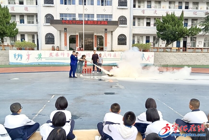 上午九時許,隨著“火情”警報響起,寧化五中模擬樓道火災疏散逃生演練拉開了序幕。按照突發事件應急預案,教師迅速到達指定地點,引導學生快速疏散。學生彎著腰、貓著步,用手帕、毛巾等捂住口鼻,沿著指定的疏散通道快速前進,有序撤離到學校前操場的安全地帶,整個疏散過程迅速而有序。隨后,縣消防救援大隊為師生講解并演示了如何正確使用干粉滅火器,師生代表和安保、生管及各功能室負責人體驗了現場滅火的過程。縣消防救援大隊還對師生進行消防安全知識培訓,講解了在火災逃生時應注意的事項和火災逃生與自救等消防知識。