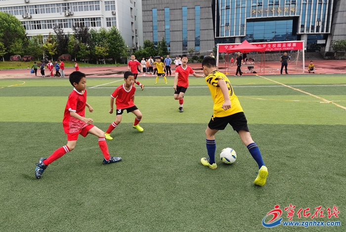 比賽中,綠茵場上的足球小將們迅速進入角色,帶球、傳球、射門……運動員們的精彩表現贏得了觀眾的喝彩聲和掌聲。