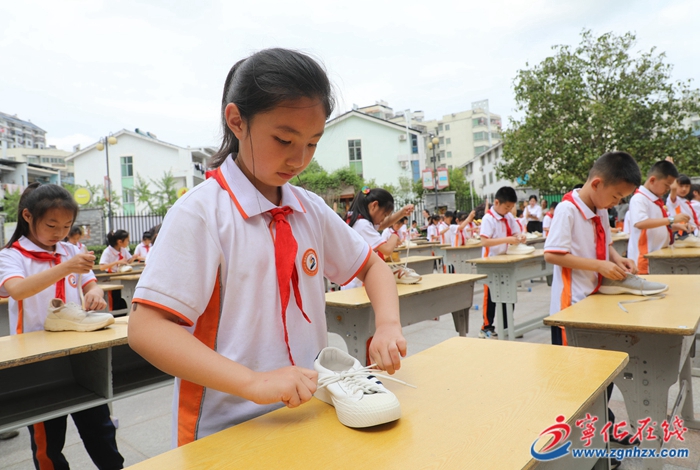 大賽根據不同年齡段學生發展特點,分層次、分年級、分項目進行比拼,圍繞學生的日常生活技能,模擬日常生活的情景,設置了系紅領巾、綁鞋帶、疊被子、水果拼盤、廚藝大比拼等多個比賽項目,學生用實際行動展示學習成果。