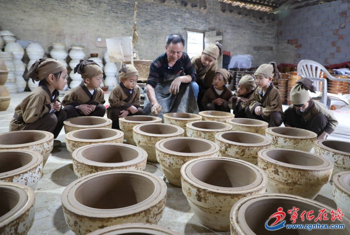 上個(gè)世紀(jì)八九十年代,是禾口陶器產(chǎn)業(yè)的鼎盛期,陶器廠制作的酒缸、酒壇、擂砵,暢銷清流、明溪、江西石城等周邊縣。張標(biāo)喜是陶器制作技藝的第五代傳承人,從事陶器制作已有40多年。他認(rèn)為玩泥巴是孩子的天性之一,能提高孩子的動(dòng)手能力,讓他們進(jìn)一步感受中國傳統(tǒng)的陶瓷制作工藝獨(dú)有魅力,從小接受傳統(tǒng)陶藝文化的熏陶。