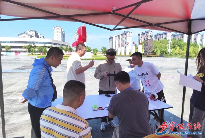 在寧化縣長征精神教育基地廣場上,無人機在空中穩定飛行,競賽選手們通過無人機安全狀態檢查后進行拍攝、監測等任務。從這里出發,無人機飛向山林尋找并采集3個目標牌二維碼,隨后,進行航空護林巡護設置和自動航線飛行,最后精準返回并降落在出發點,工作人員根據評審表進行打分。