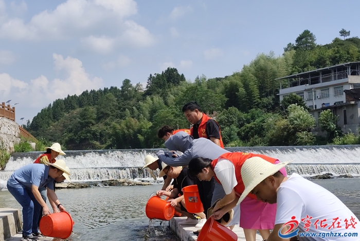 啟動儀式后,工作人員向安遠溪增殖放流各類魚苗200余公斤,清理河道及河岸10余公里,派發(fā)保護母親河宣傳單頁500余份。