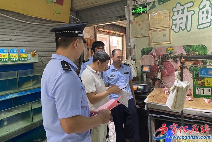 活動(dòng)中,執(zhí)法人員重點(diǎn)檢查市場(chǎng)肉攤銷(xiāo)售點(diǎn)的生鮮豬、牛肉等肉類(lèi)產(chǎn)品是否經(jīng)過(guò)檢驗(yàn)檢疫,“兩證兩章”是否齊全,并發(fā)放宣傳單,講解食品安全相關(guān)的法律法規(guī),引導(dǎo)經(jīng)營(yíng)者認(rèn)真落實(shí)進(jìn)貨查驗(yàn)等相關(guān)制度,嚴(yán)把生鮮肉類(lèi)產(chǎn)品進(jìn)貨關(guān)、銷(xiāo)售關(guān),保障居民可以買(mǎi)到“安全肉”、“放心肉”。