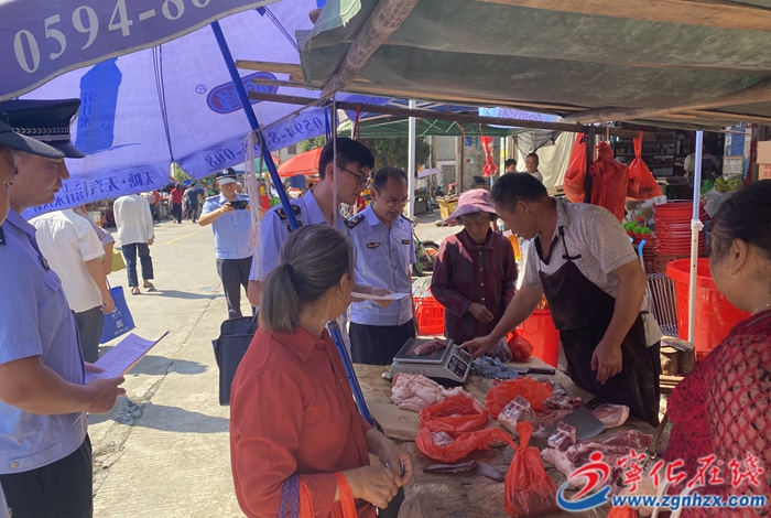 近日,淮土鎮(zhèn)借助圩日開(kāi)展肉類(lèi)產(chǎn)品違法犯罪專(zhuān)項(xiàng)整治、宣傳活動(dòng),加強(qiáng)淮土鎮(zhèn)肉類(lèi)產(chǎn)品監(jiān)管工作,嚴(yán)厲打擊肉類(lèi)產(chǎn)品違法犯罪,保障肉類(lèi)產(chǎn)品質(zhì)量安全。