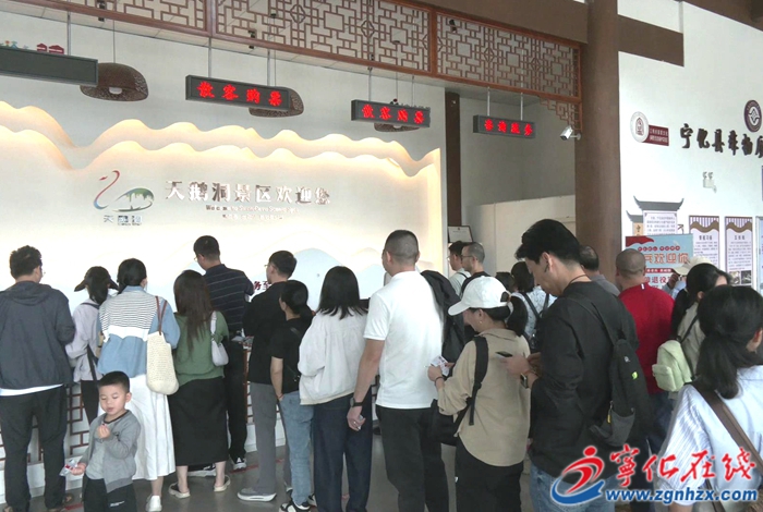 在天鵝洞游客服務中心,來自省內外的眾多游客排起了長長的隊伍,進行有序購買門票,工作人員則細心接待、引導。天鵝洞美麗又神奇的巖溶地貌景觀,讓游客們嘆為觀止、流連忘返。