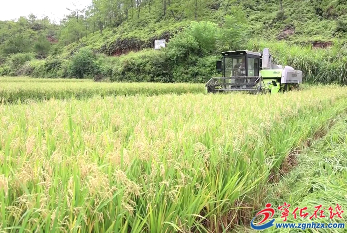 眼下,正值中國地理標志產品河龍貢米收割期。在寧化縣河龍鄉下伊村,收割機在田隴間來回穿梭,糧農將脫粒后的稻谷裝袋、打包、運送,顆粒歸倉。